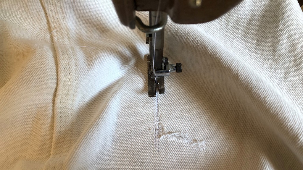 - 最初にほどいたところを、ほどいたところの縫い目に重なる様に縫っていく。